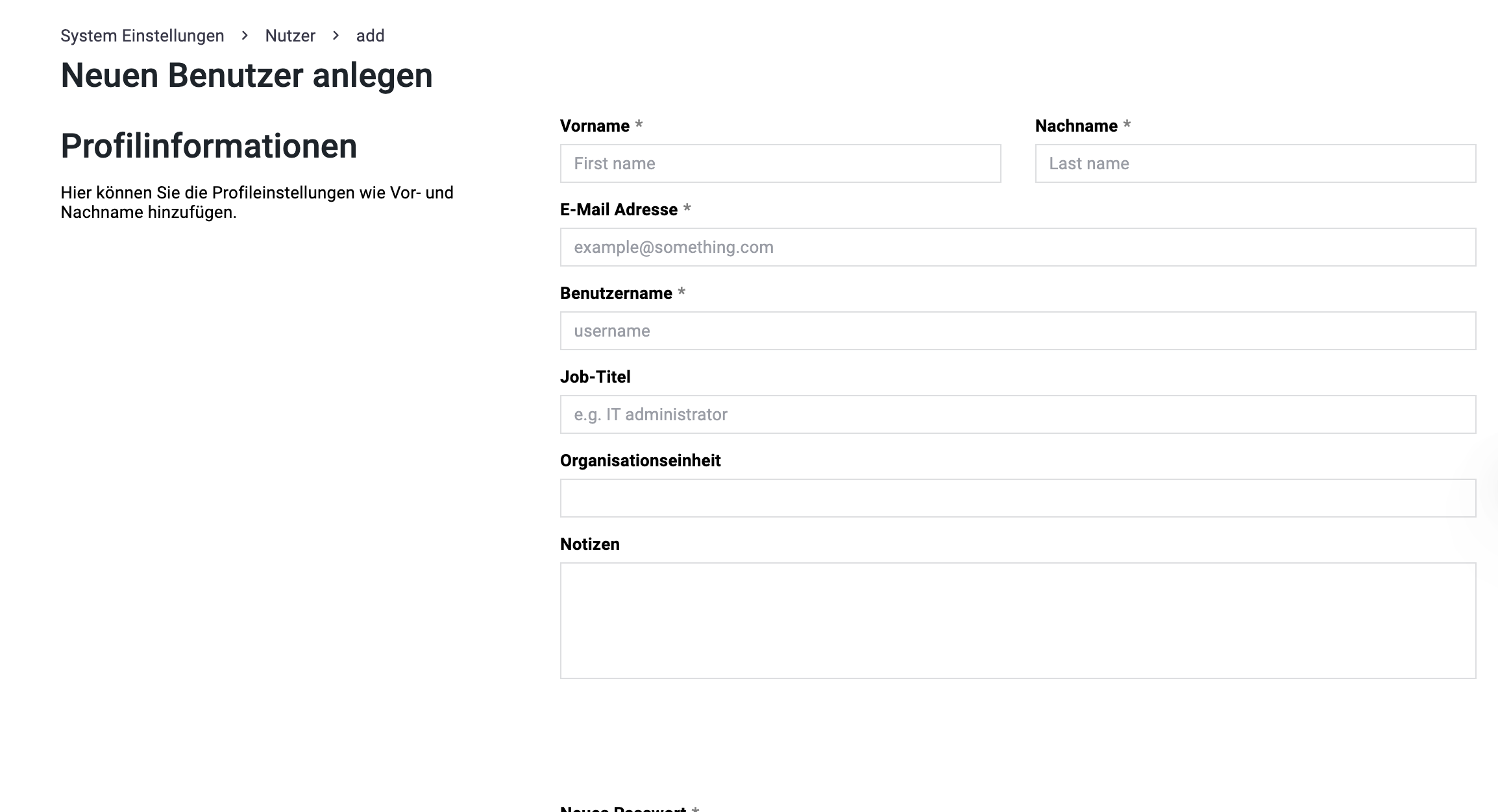 - Organisationseinheit (optional): Die Organisationseinheit kann dafür genutzt werden, die Nutzer auf Ihrem System besser zu strukturieren.