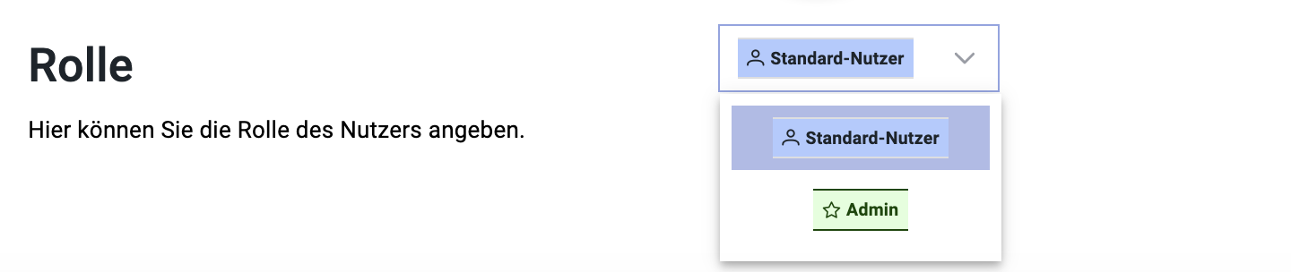 - Rolle: Derzeit gibt es zwei verschiedene Benutzerrollen, die sich hinsichtlich der zugewiesenen Rechte unterscheiden.
