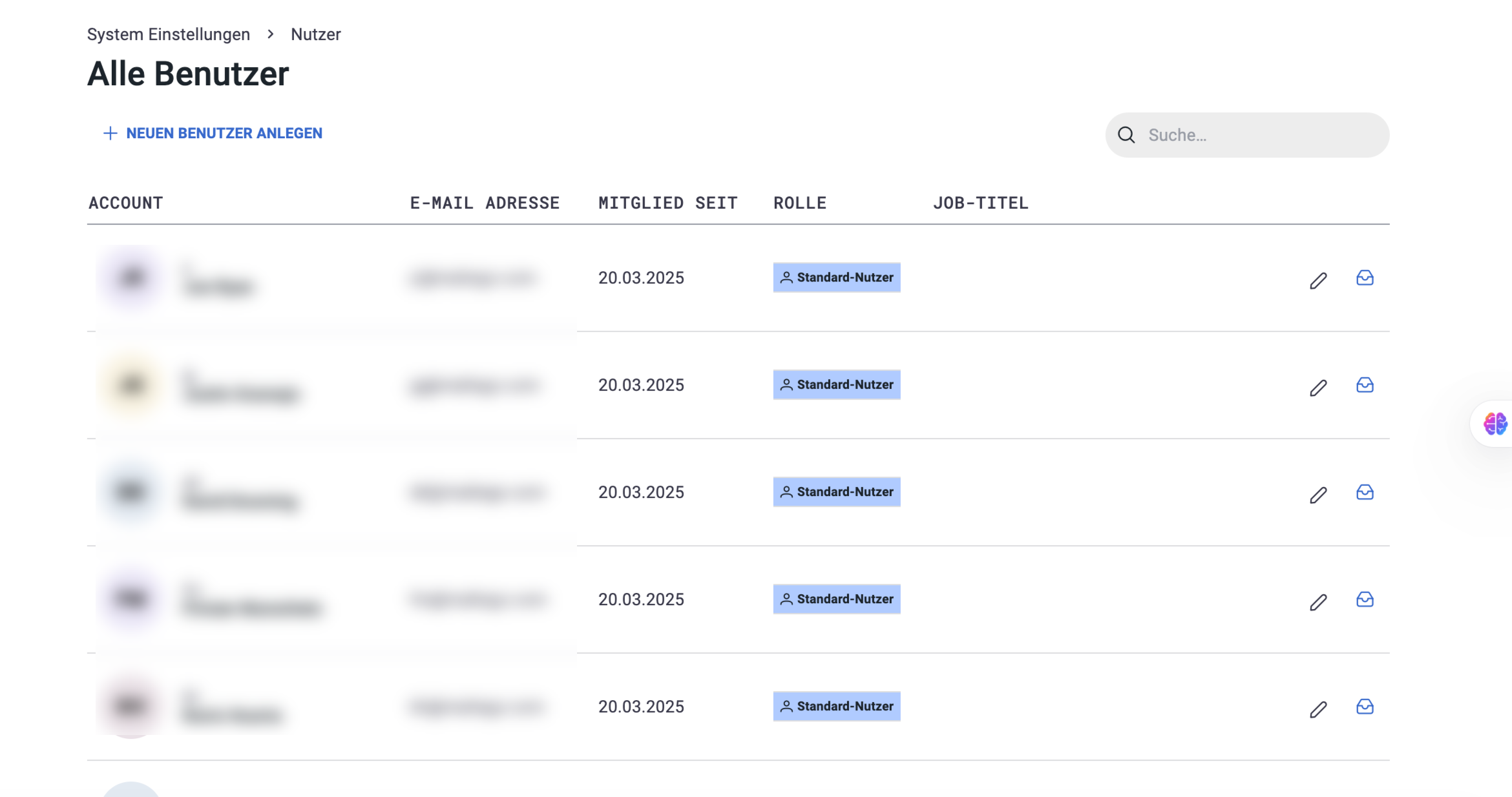 Für jeden Benutzer werden Details wie Name, E Mail Adresse und Benutzerrolle angezeigt. Außerdem können Sie den Benutzer bearbeiten oder archivieren.